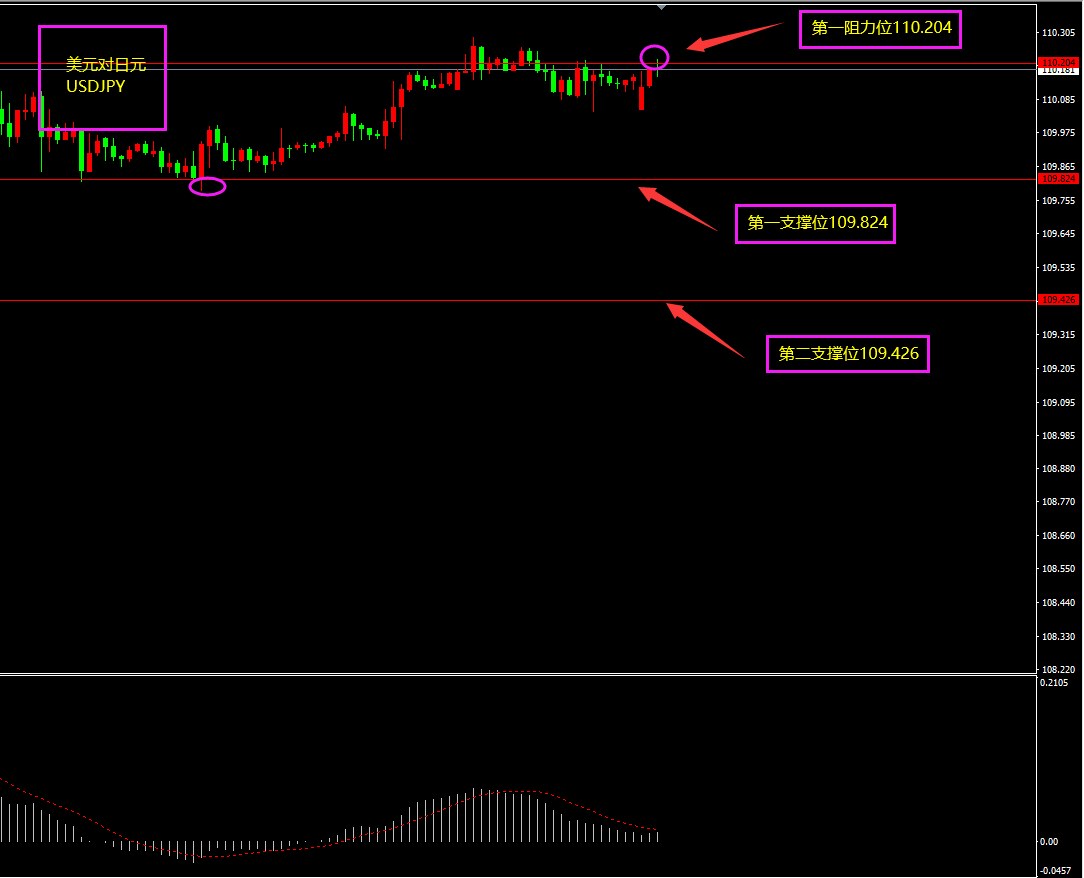技术点评:天图美日上周五虽收阳线,但上影线较长,冲高之后回落,上方有空头存在,日内以震荡以及震荡下行为主。小时图美日价格徘徊在110.20附近,前两日美指大幅上涨,未带动美日上涨,短期MACD能量体大幅下滑,多头减弱,若日内有大阴线产生,则将形成顶背离,后续将看空?