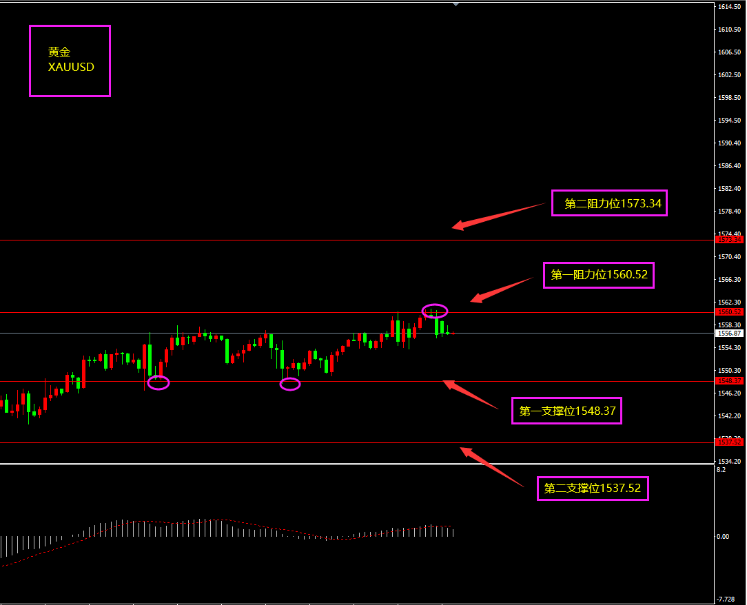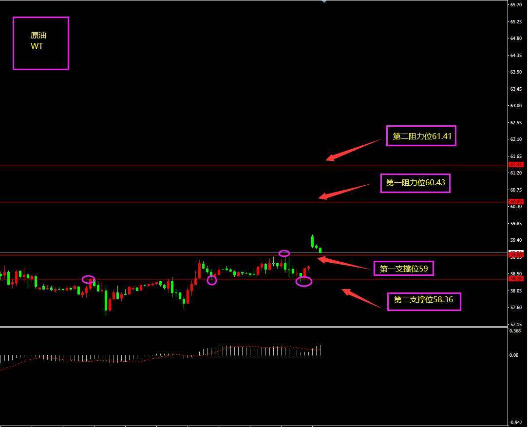 策略分析:第一、二支撑位附近轻仓看多,如有大阴线跌破第二支撑位则转为观望。