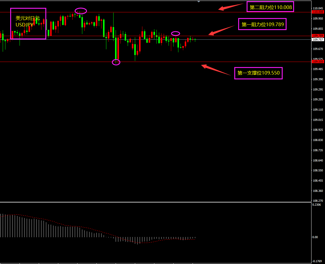 技术点评:天图美日短期上涨走势放缓,技术面处于回调走势,而昨日收阳线,因美指晚间冲高所致,短期上方多头不稳,日内仍面临下行风险。小时图美日自MACD形成底背离之后,后续有大阴线产生,MACD转移至0轴之下,空头为主,且近期未有大阳线突破前高,日内更多逢高看空为主。