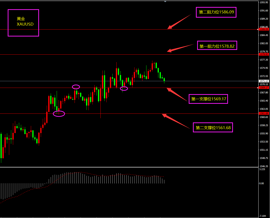 策略分析:第一支撑位附近轻仓看多,如有大阴线跌破第一支撑位则转为观望。