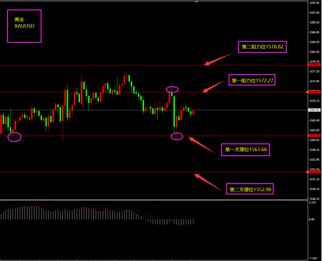策略分析:第一支撑位附近轻仓看多,如有大阴线跌破第一支撑位则转为观望。