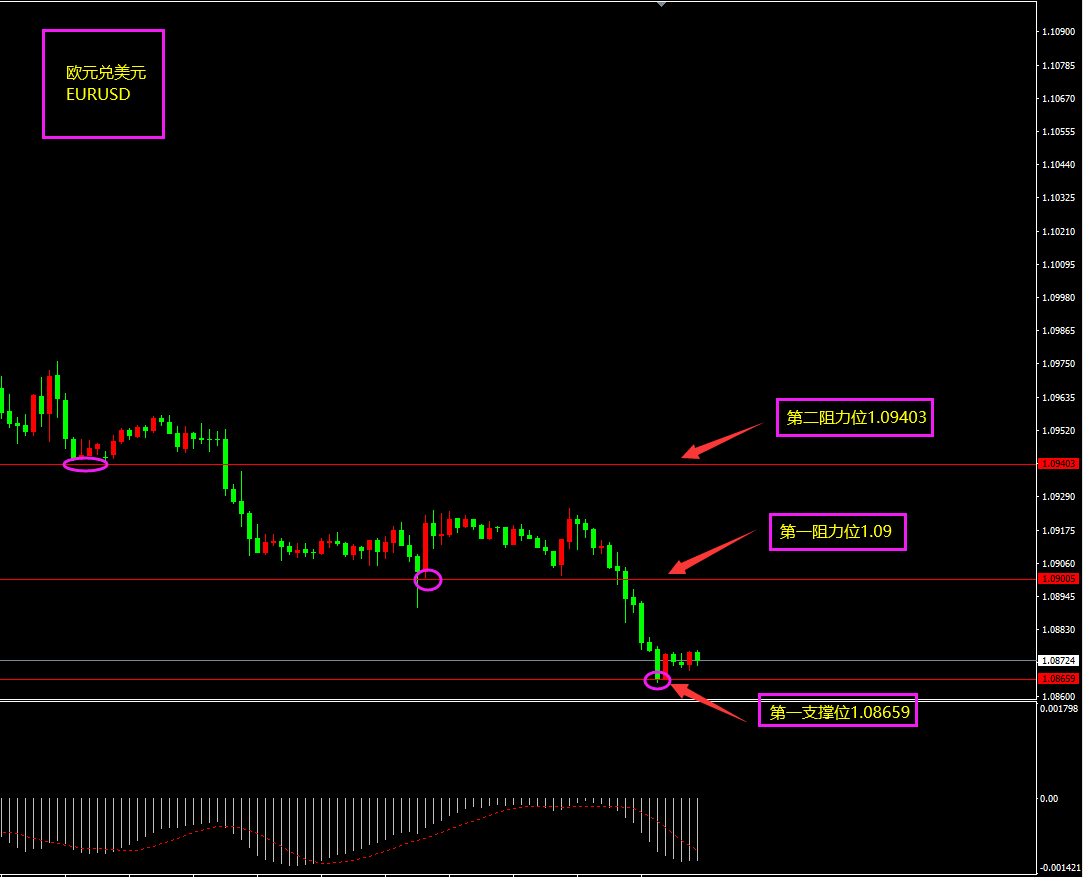 策略分析:第一、二阻力位轻仓看空,如有大阳线打破第二阻力位则转为观望。