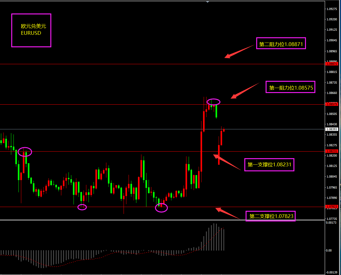 策略分析:第一、二支撑位附近轻仓看多。第二阻力位附近轻仓看空。