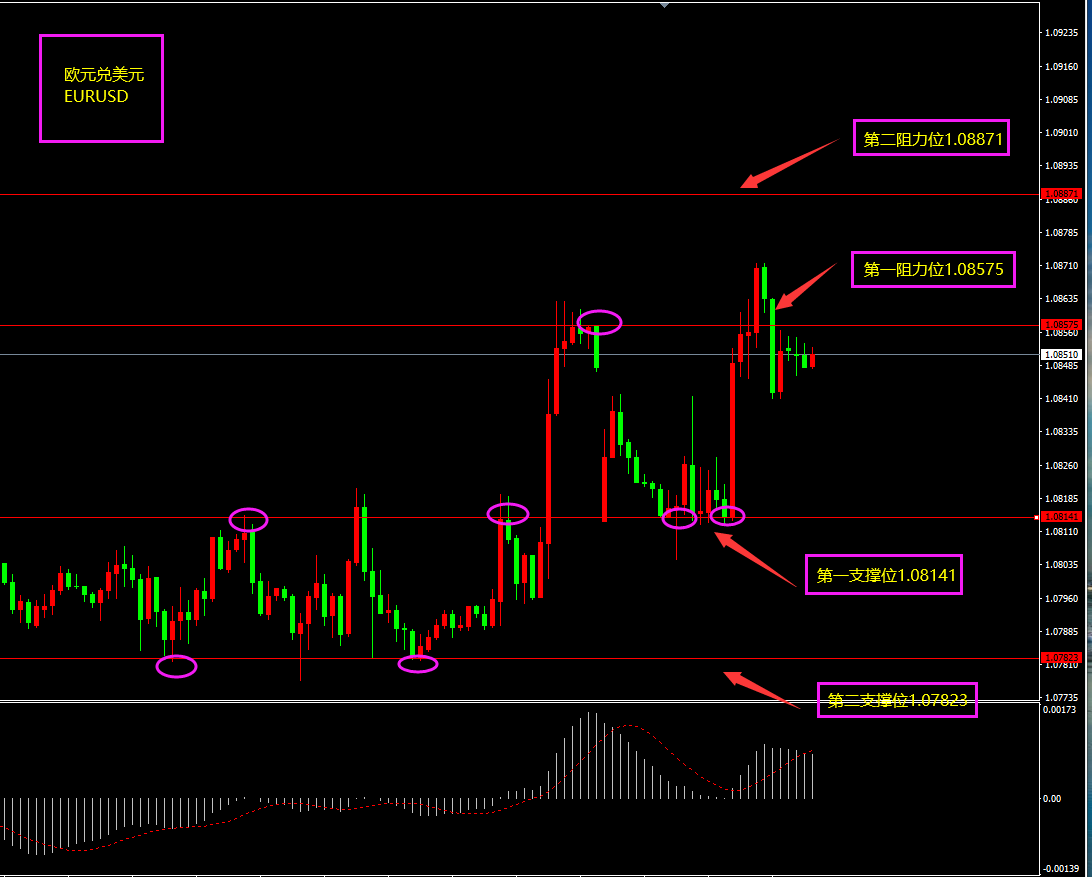 技术点评:天图欧元基本面逐渐好转,技术面面临超跌反弹,昨日再次收大阳线,多头兴起,底部开始筑底,随着美元的高位回落,欧元日内继续保持逢低看多为主。小时图欧元MACD转移至0轴之上,期间有大阳线拉升,多头为主,技术面回踩前期盘整高点,回踩之后继续上涨,日内欧元继续以逢低看多为主。
