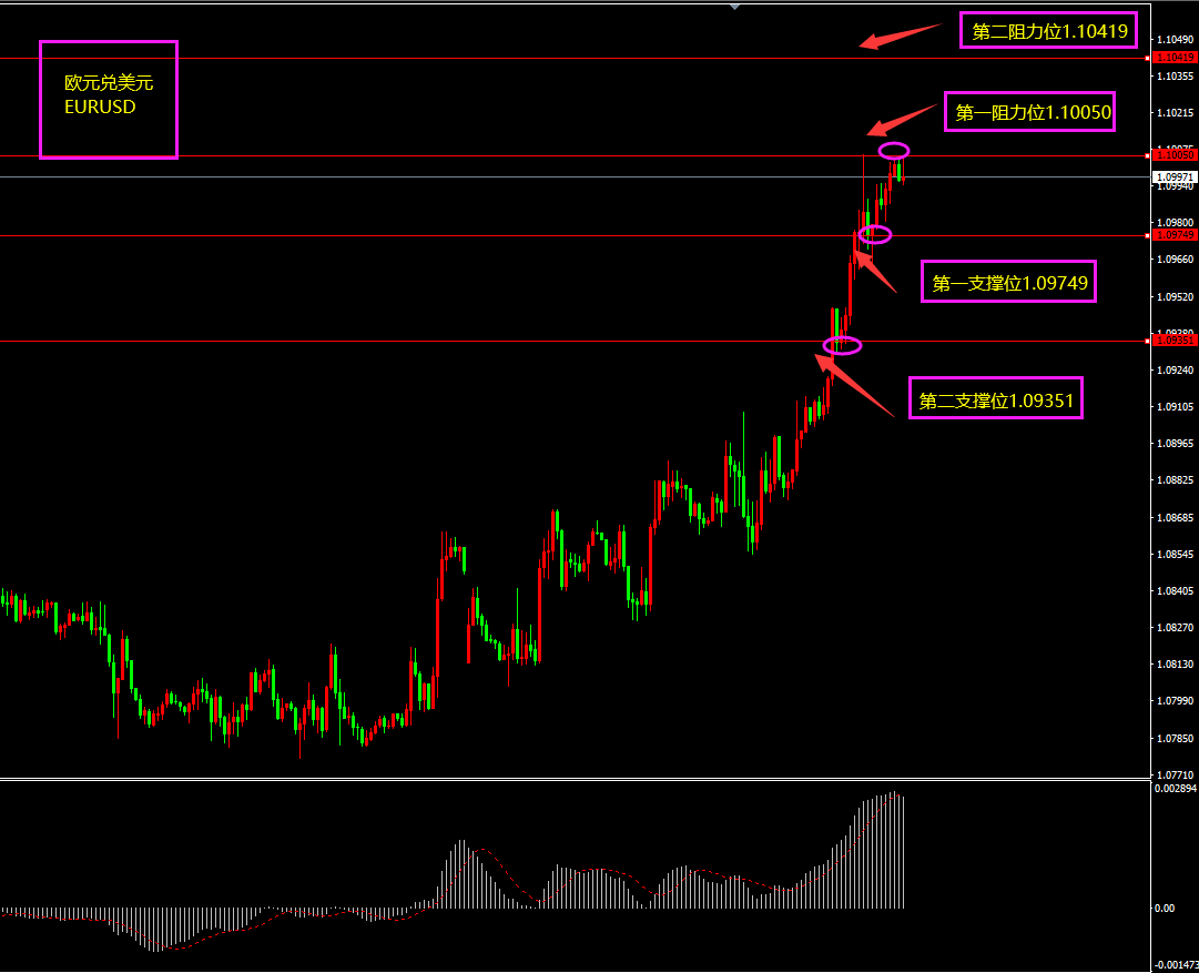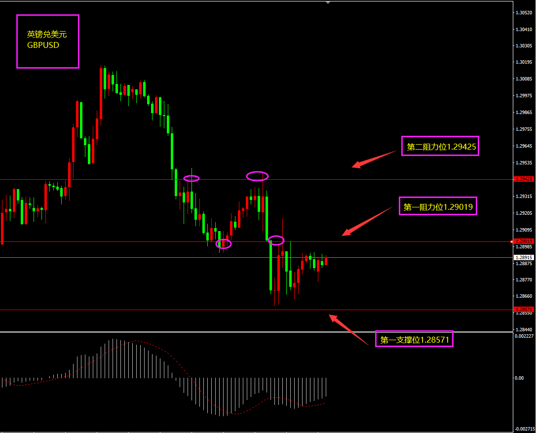 技术点评:天图欧元基本面逐渐好转,技术面超跌反弹也迎来了上涨,目前多头兴起,底部筑底,但美指连续下跌之后面临回调,且欧元MACD位于0轴之下,空头仍在,欧元日内更多以震荡为主。小时图欧元期间连续阳线拉升,MACD位于0轴之上,多头为主,目前能量体接近顶峰,走势进入调整,日内欧元保持以震荡为主。