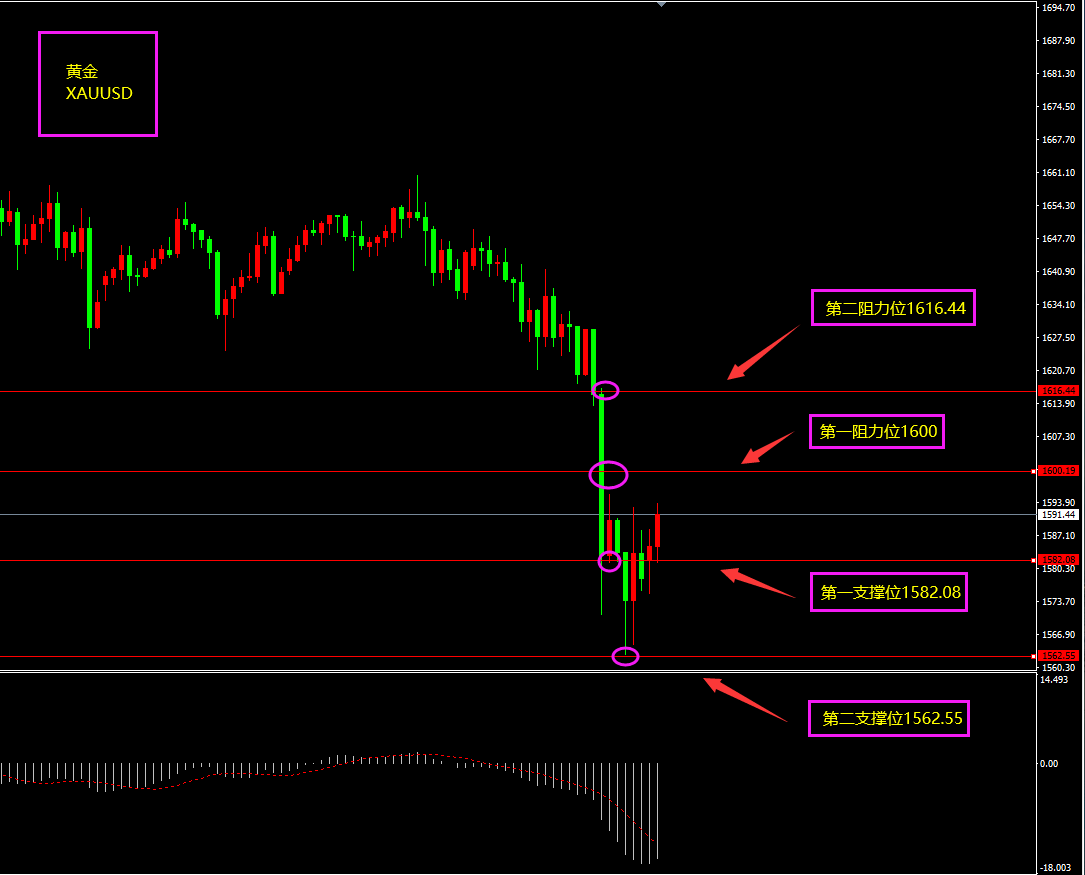 技术点评:天图黄金出现600点暴跌,几人忧喜几人愁,黄金的暴跌验证近期看空方向,随着黄金泡沫的破灭,只怕短期若无避险事,黄金难以走强,暴跌之后面临修复,日内保持以震荡为主。小时图黄金期间出现连续阴线回落,MACD位于0轴之下,空头为主,短期底部有阳线产生,走势进入修复期,日内保持以震荡为主。