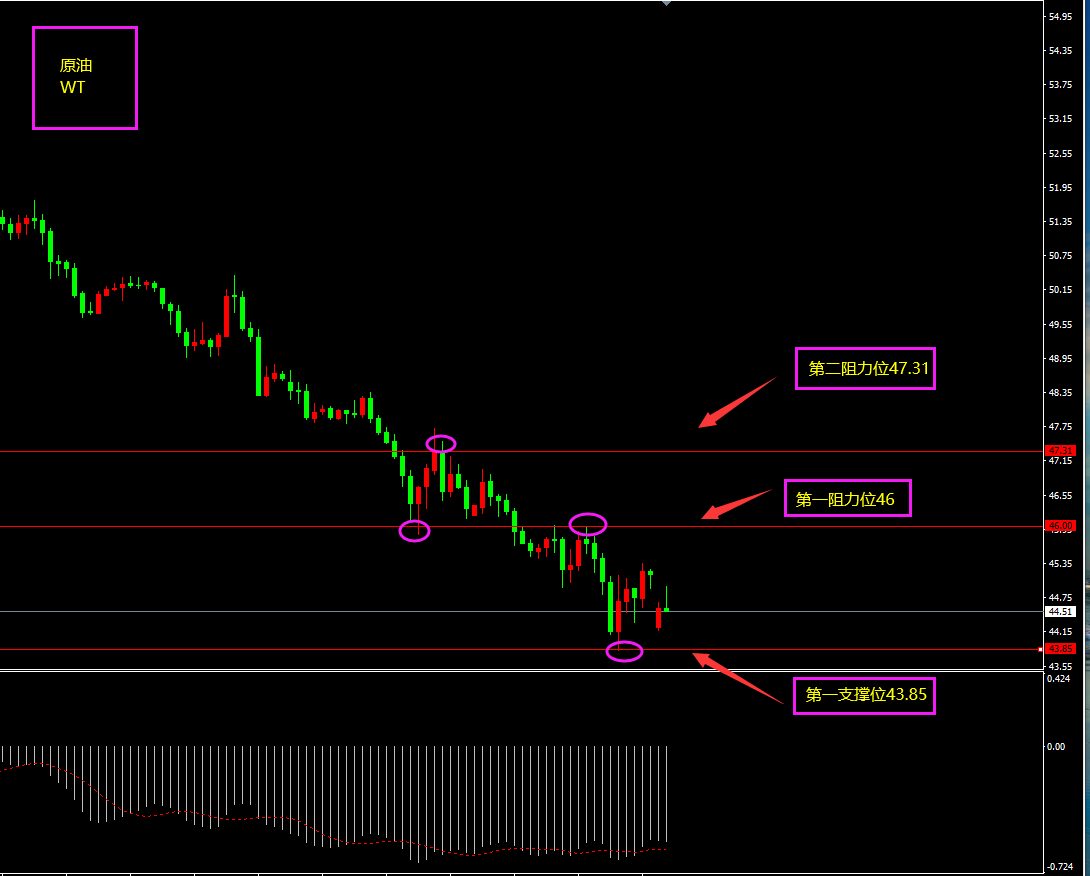 趋势分析:原油连续下行,但使用价值存在,越往下走,底部支撑将越强。