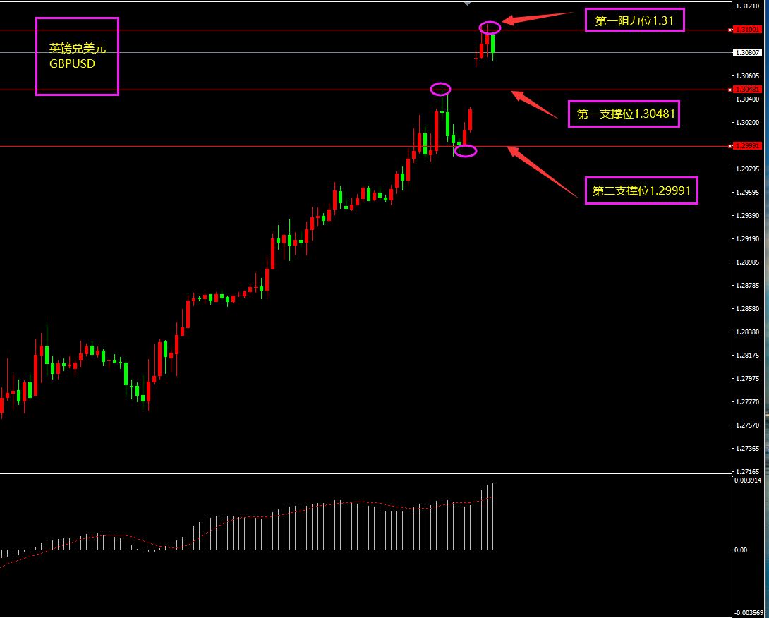 趋势分析:英镑底部强力反弹,空头转多头。美指连续溃败利好英镑。