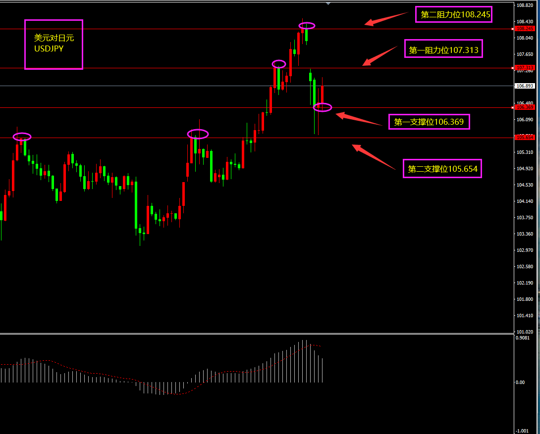 策略分析:第一支撑位附近轻仓看多。如有大阴线跌破第一支撑位则转为观望。