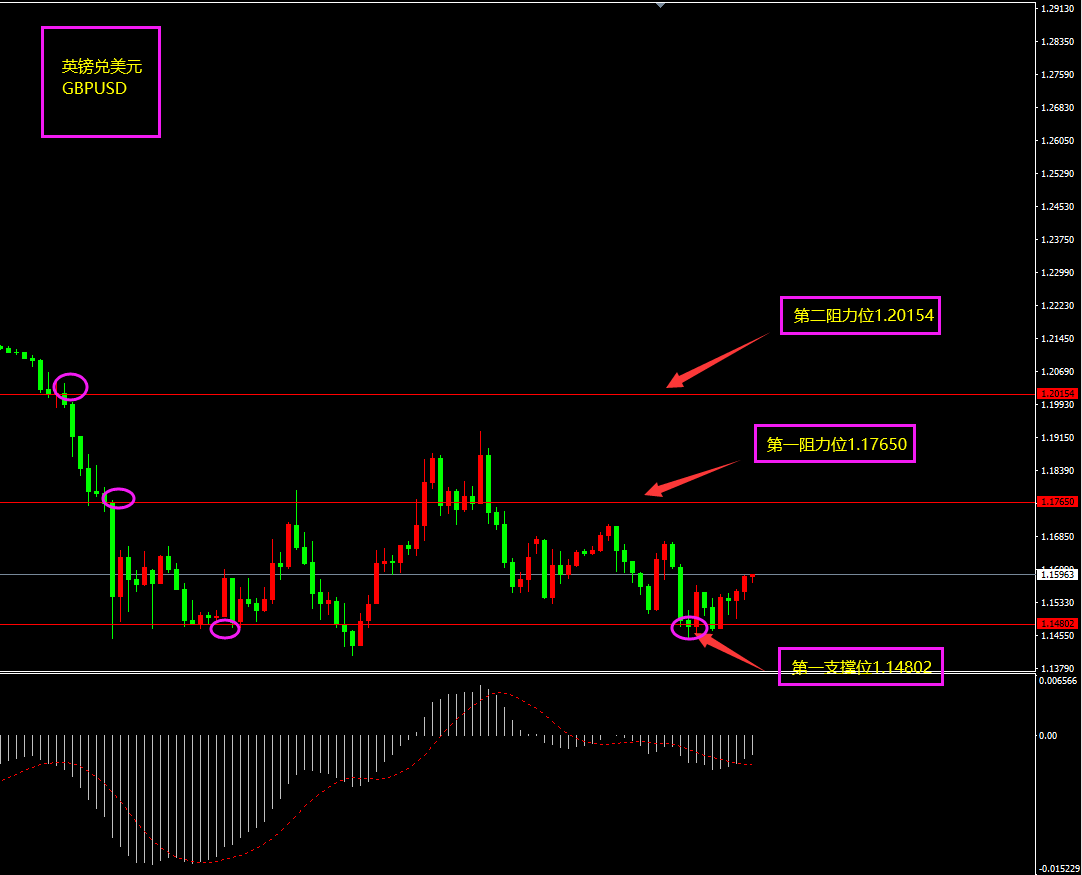 趋势分析:英镑空头放缓,形成底背离。后续看反弹。