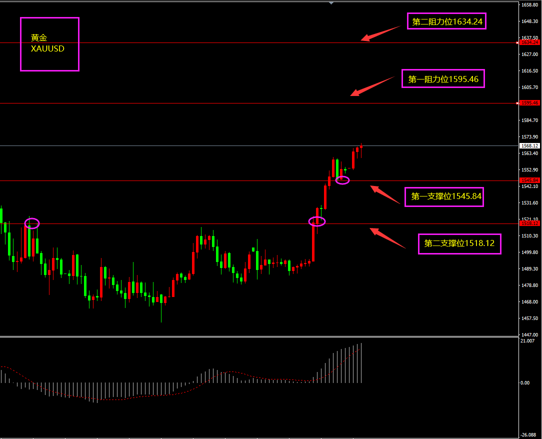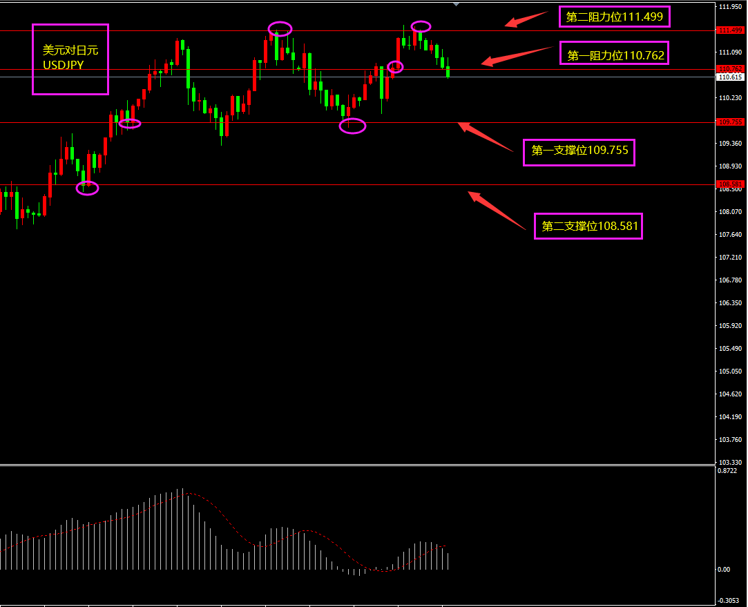 策略分析:第一、二支撑位附近轻仓看多,如有大阴线跌破第二支撑位则转为观望。