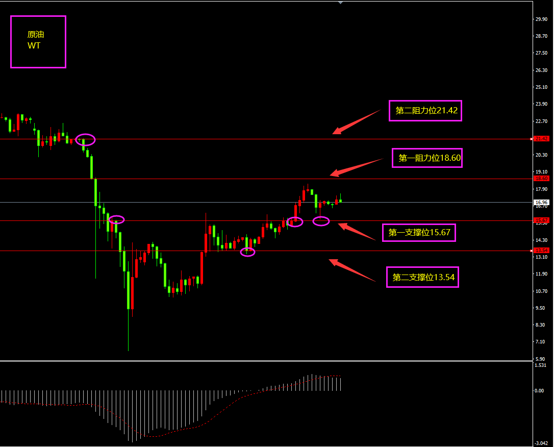 策略分析:第一、二支撑位附近轻仓看多。如有大阴线跌破第二支撑位则转为观望。