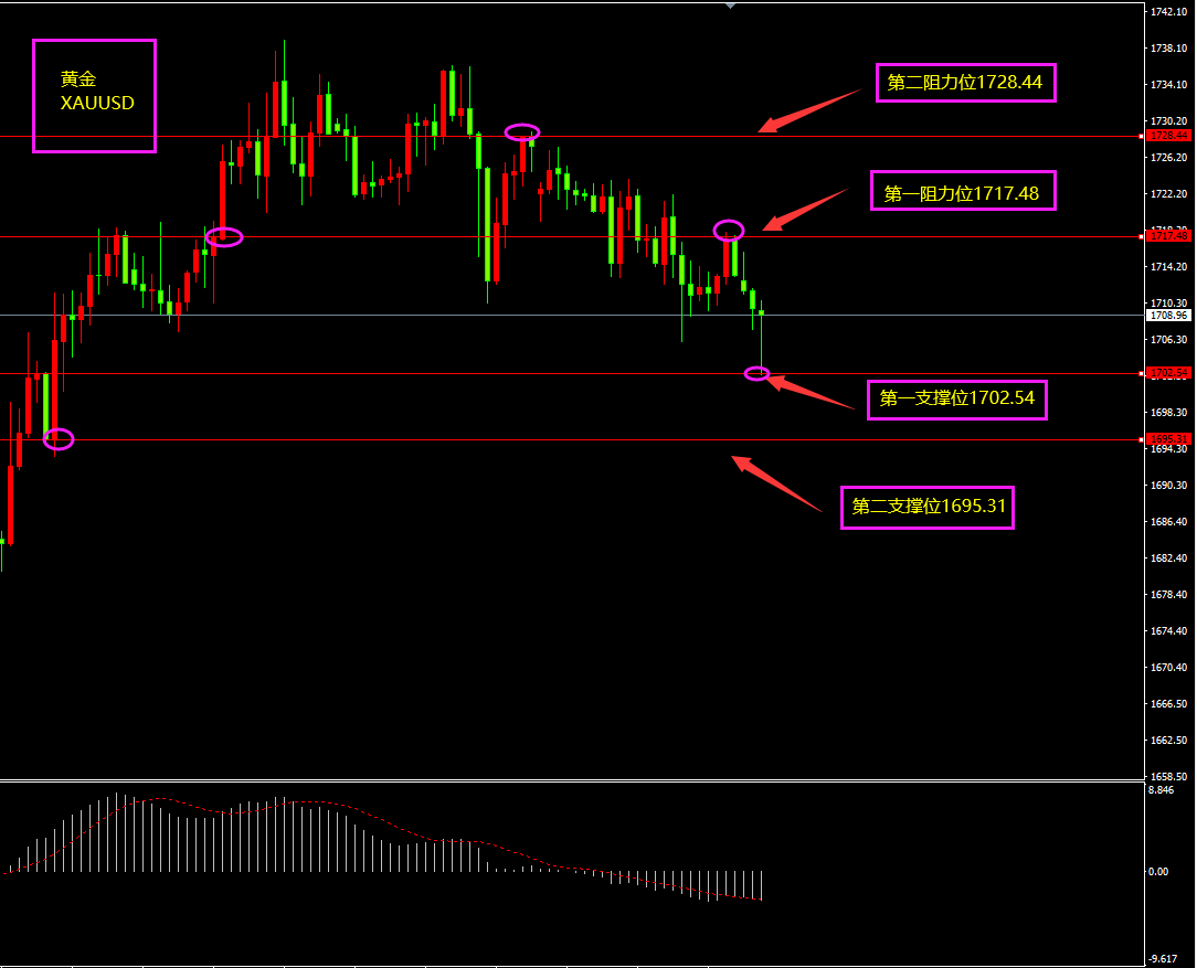 策略分析:第一支撑位附近轻仓看多,如有大阴线跌破第一支撑位则转为观望。