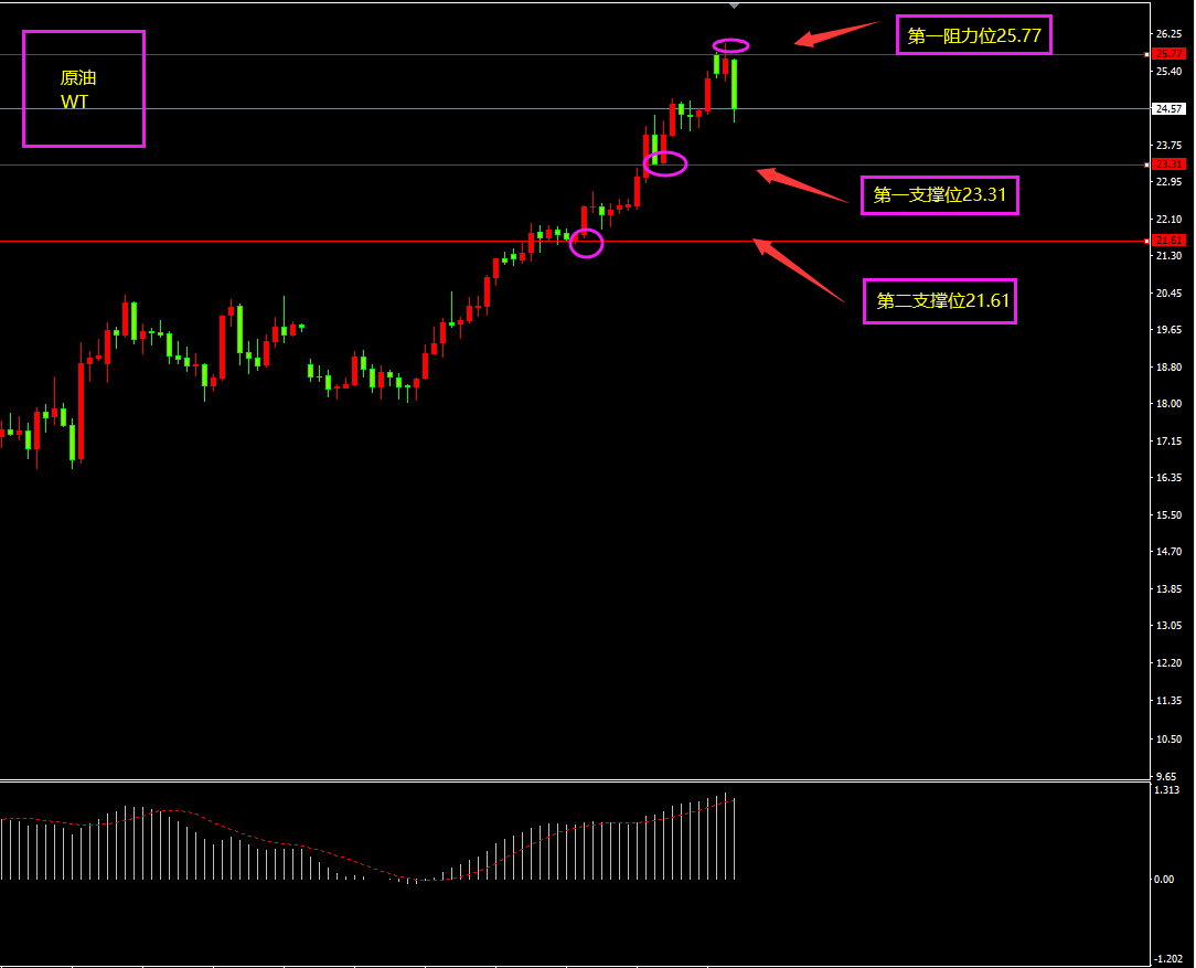 策略分析:第一支撑位附近轻仓看多,如有大阴线跌破第一支撑位则转为观望。