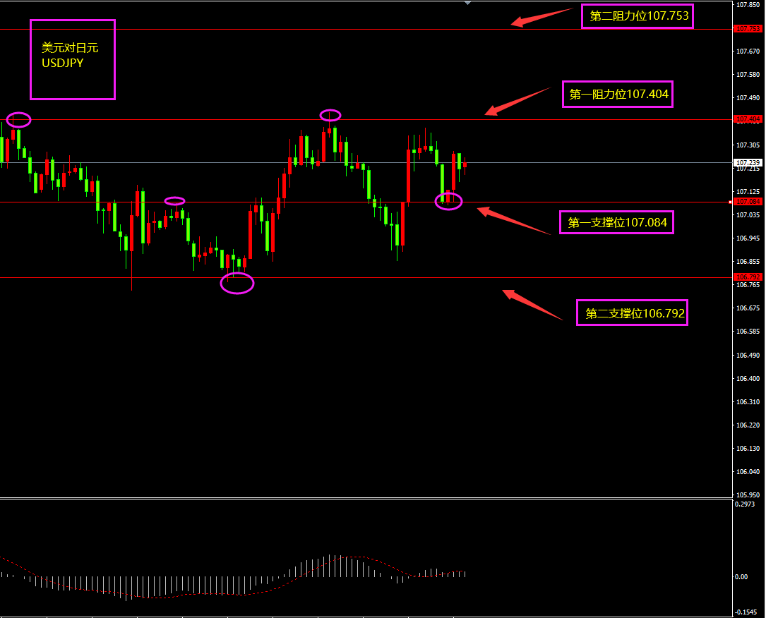 技术点评:天图美日昨日收阴线,上方多头力度逐渐衰减,空头力度逐渐加强,短期MACD仍位于0轴之下,空头为主,日内更多以震荡以及震荡下行为主。小时图美日期间有连续阳线拉升,但MACD能量已大幅减小,上方空头凸显,日内更多以震荡以及震荡下行为主。