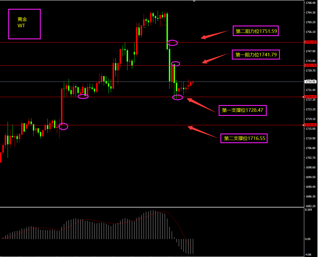 策略分析:第一、二支撑位附近轻仓看多,如有大阴线跌破第二支撑位则转为观望。