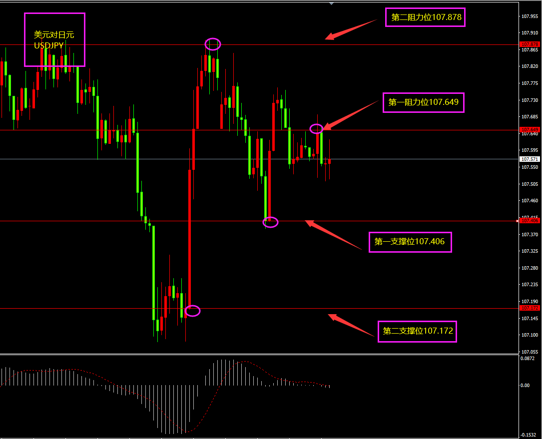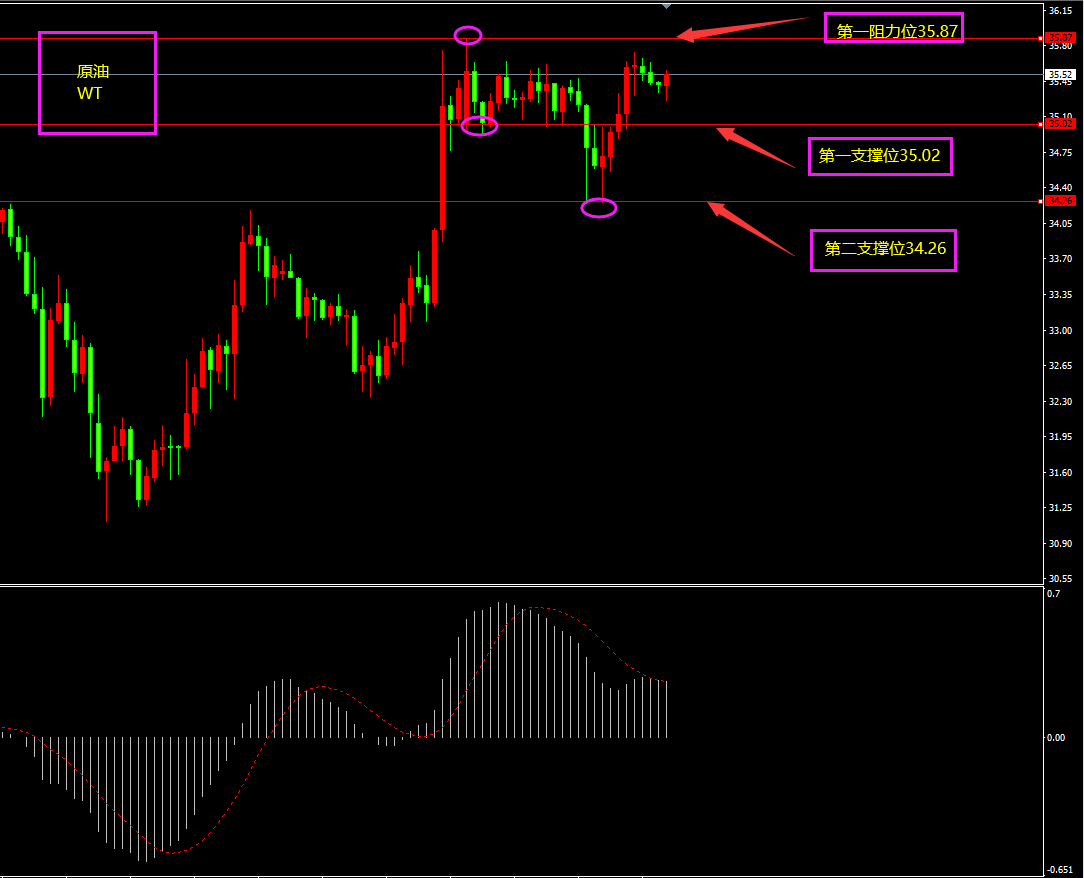 策略分析:第一、二支撑位附近轻仓看多,如有大阴线跌破第二支撑则转为观望。
