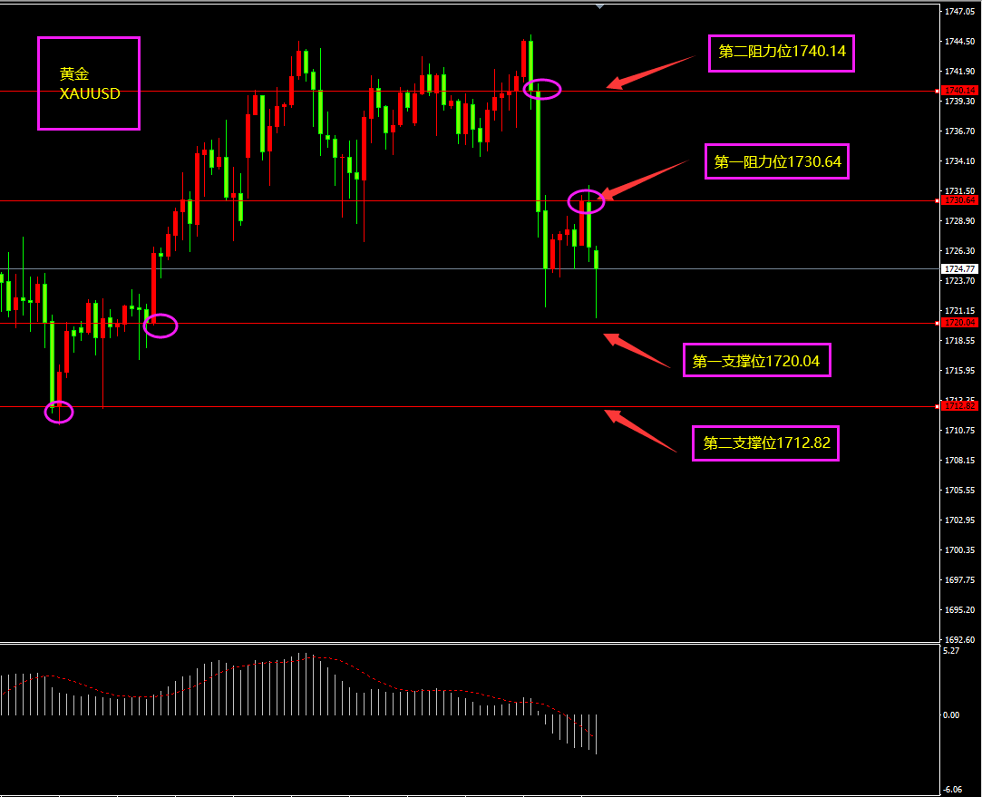 策略分析:第一阻力位附近轻仓看空,第一、二支撑位附近轻仓看多。