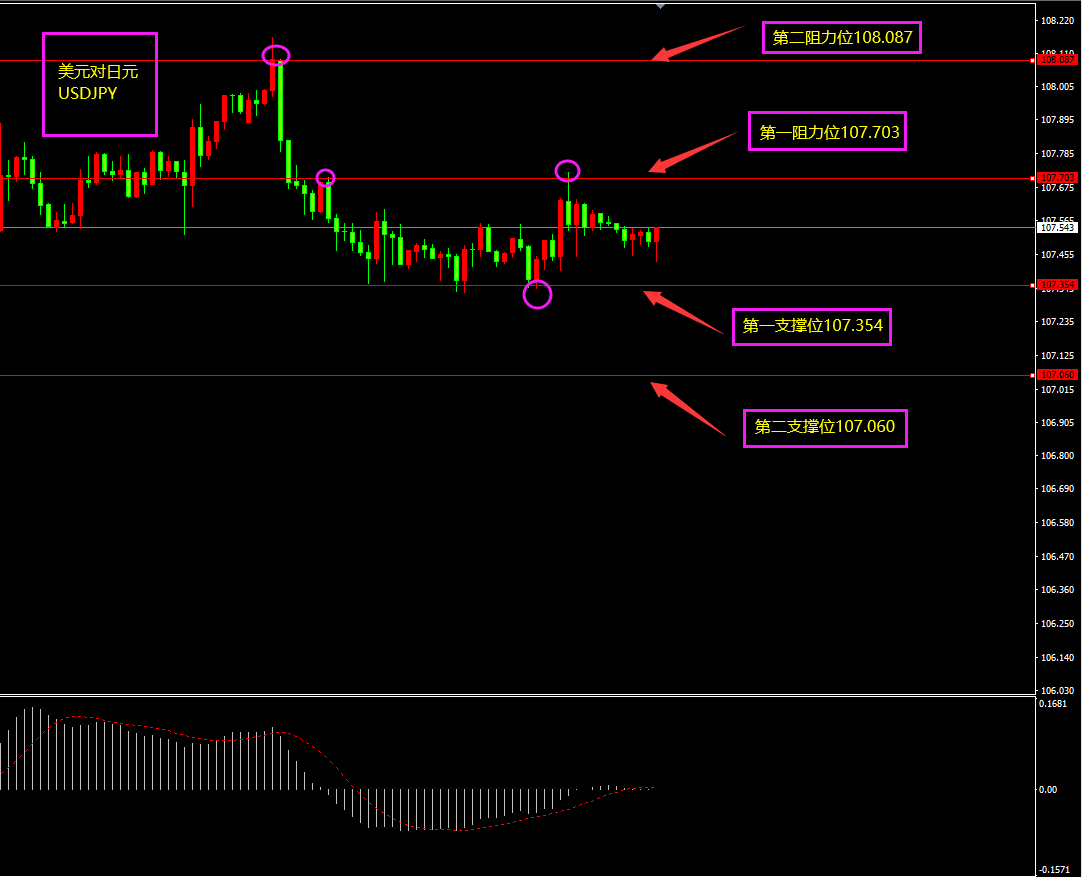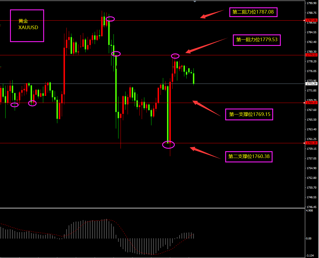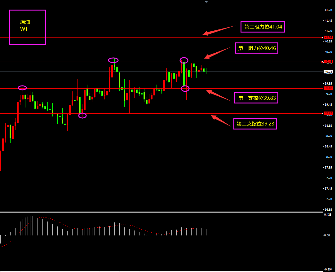 策略分析:第一、二支撑位附近轻仓看多,如有大阴线跌破第二支撑位则转为观望。