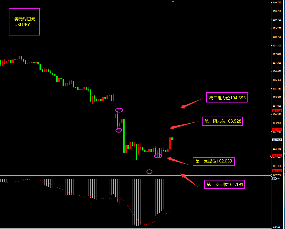 趋势分析:美指超跌反弹,带动美日上行,避险减弱,美日迎来反弹。